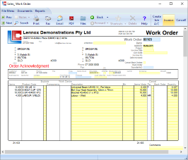 Data is recorded progressively into the database allowing the status of orders to be interrogated and tracked on a line by line basis. Individual order documents keep track of "Work In Progress" and "Items Shipped" line by line.
